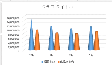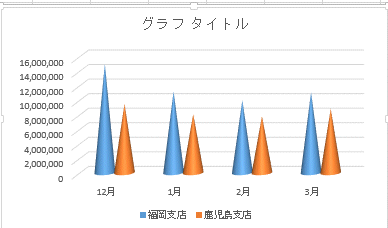 - 2つの系列を円錐(全体)に設定した例です。