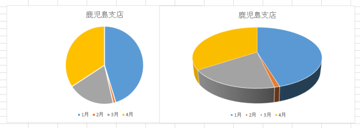 - 3-D円グラフになりました。ただし、よく見ないと3-D になっているのかわからない程度です。