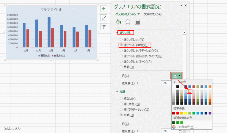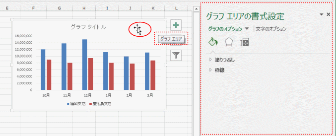 よねさんのExcelとWordの使い方|エクセル2013基本講座:目次|グラフの使い方|グラフエリアの書式設定方法