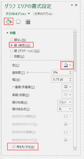 - 右側に「グラフエリアの書式設定」ウィンドウが表示されます。