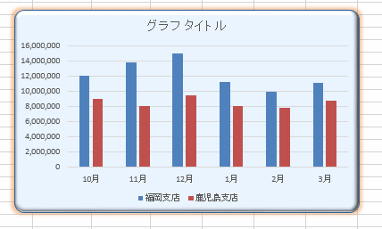 - グラフの要素が何もない部分をポイントし、「グラフエリア」と表示されたらダブルクリックします。