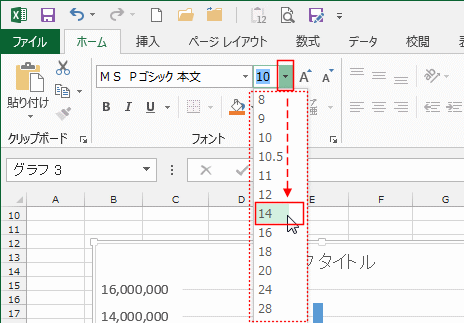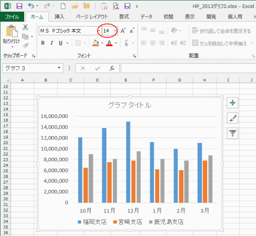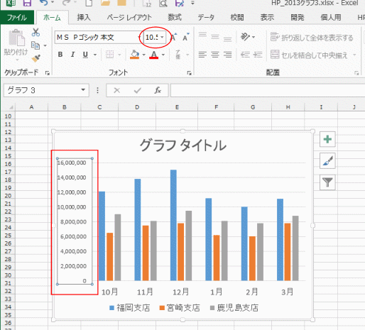 よねさんのExcelとWordの使い方|エクセル2013基本講座:目次|グラフの使い方|グラフのフォントサイズを変更する