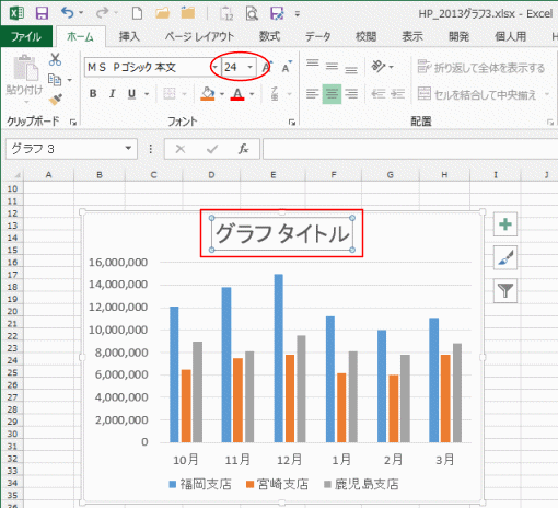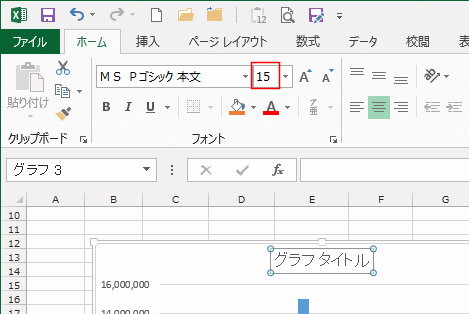 - グラフタイトルを選択して、[Ctrl]+[Shift]+[>](フォントサイズの拡大のショートカットキー)を3回押しました。