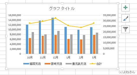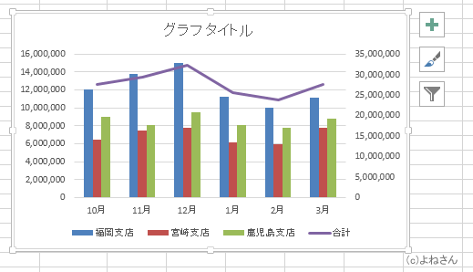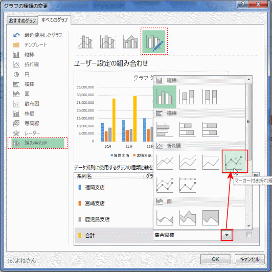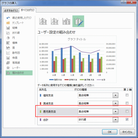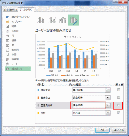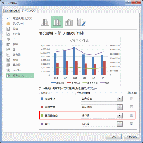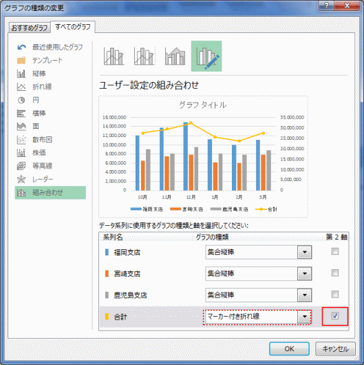 | [複合グラフの挿入]から複合グラフを作成する | 基本となるグラフを作成し、系列のグラフの種類を変更する方法 |