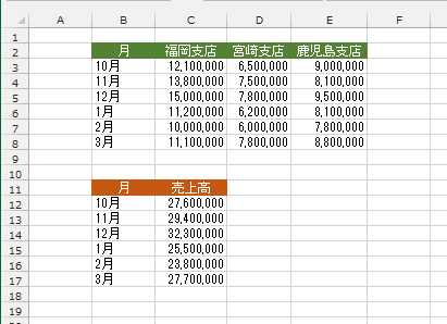 - グラフにしたいデータが下図のように2つに分かれているケースです。