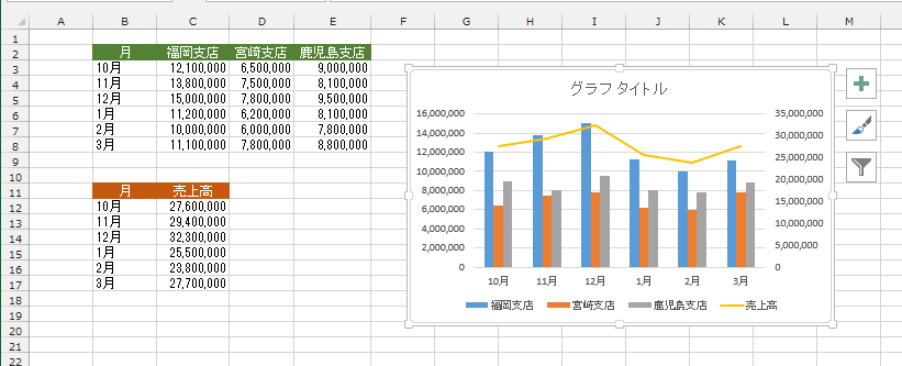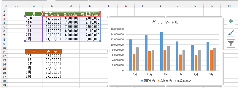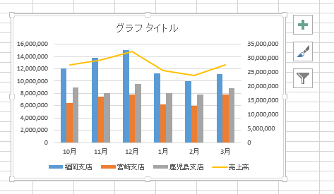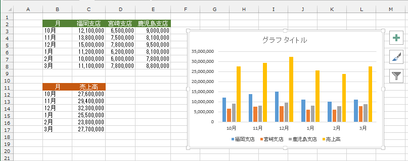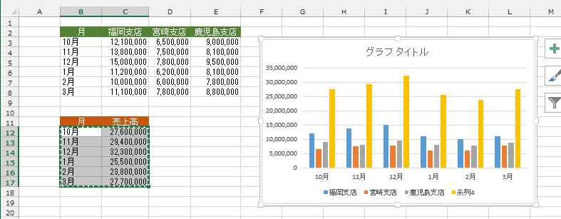 系列「福岡支店」〜「鹿児島支店」は「集合縦棒」にします。