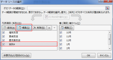 - 「系列4」を選択して、[編集]ボタンをクリックします。