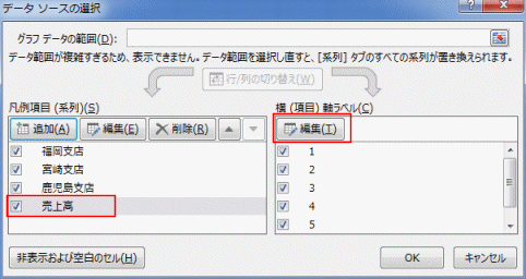 横(項目)軸ラベルがちょっとおかしくなってしまいましたので、[編集]ボタンをクリックします。