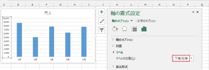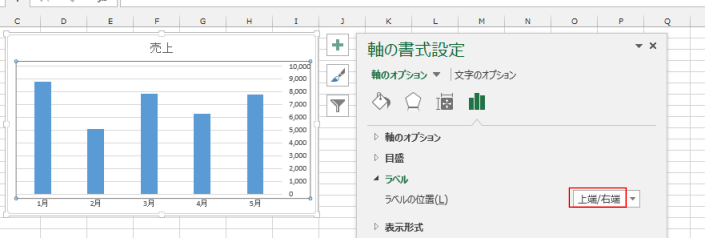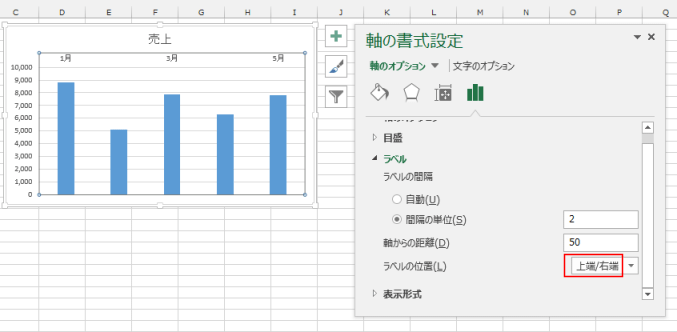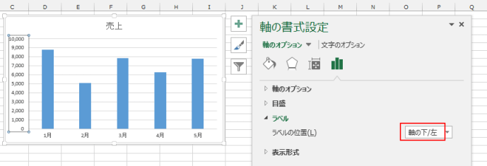 - 軸のラベルの配置を変更することができます。