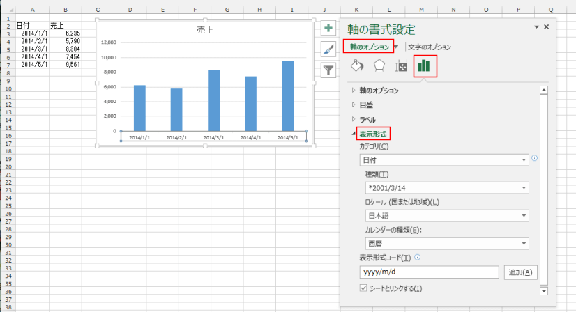 グラフの軸の書式設定の使い方