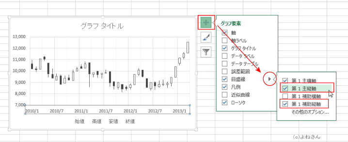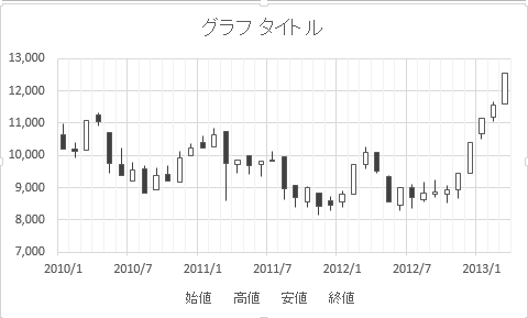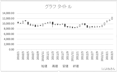 よねさんのExcelとWordの使い方|エクセル2013基本講座:目次|グラフの使い方|株価チャート(ローソク足)を作成する