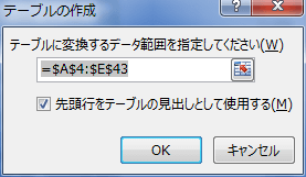 - データ範囲が正しいことを確認します。正しくないときは正しいデータ範囲を選択して修正します。