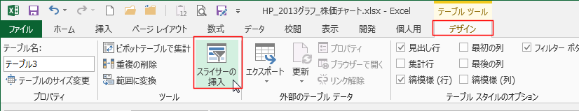 [スライサーの挿入]を実行します。