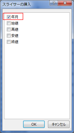 - 「年月」にチェックを入れ、[OK]ボタンをクリックします。