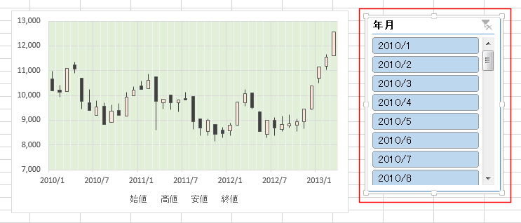 - スライサーが表示されました。