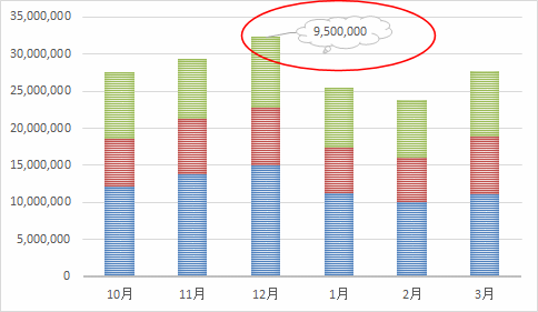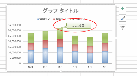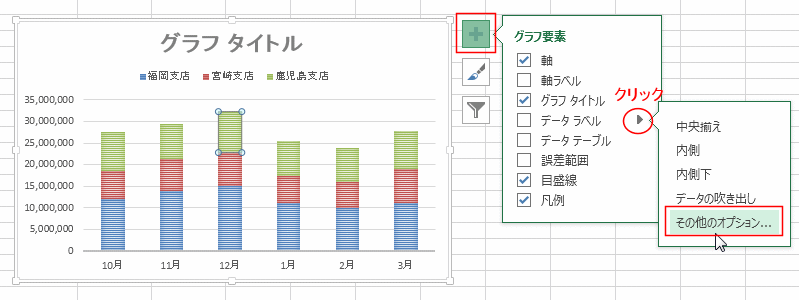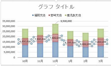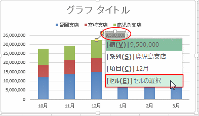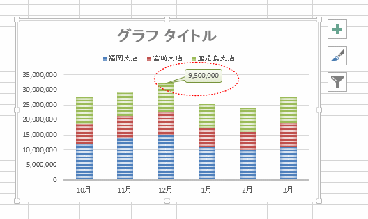 | 系列の中の1つ要素を選択しているケース | 系列を選択しているケース |
