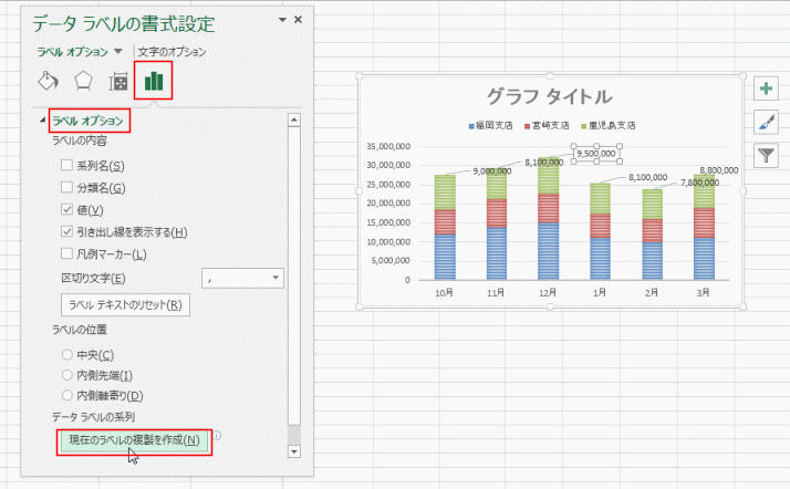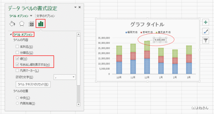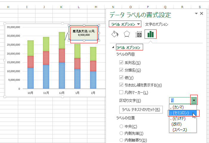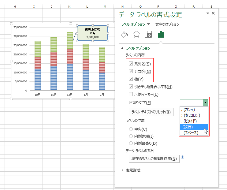 | データラベルの区切り文字を設定する | データラベルへセル値を参照する |