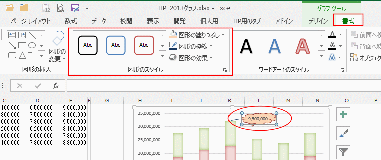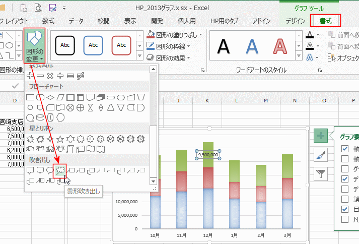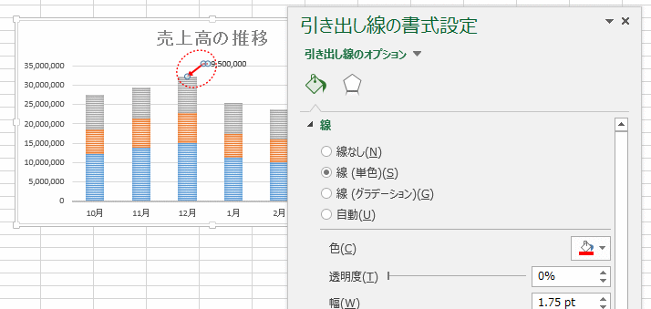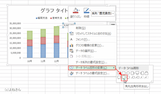 | データラベルに引き出し線を追加する | データラベルの図形を変更する |