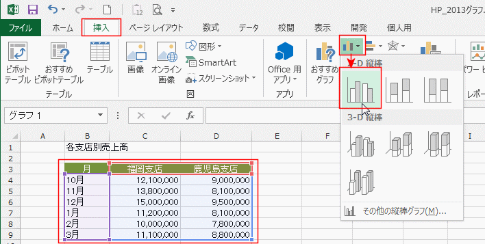 よねさんのExcelとWordの使い方|エクセル2013基本講座:目次|グラフの使い方|グラフの作成方法