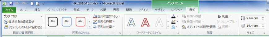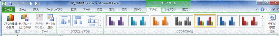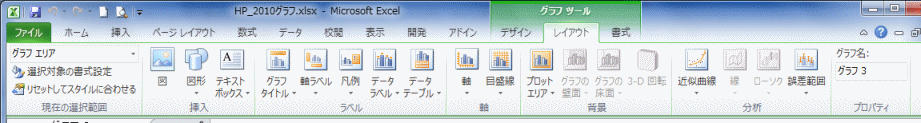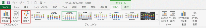 - Excel2013のグラフ ツール リボンはExcel2010と比べて、タブが2個になり、コマンドが整理されているようです。