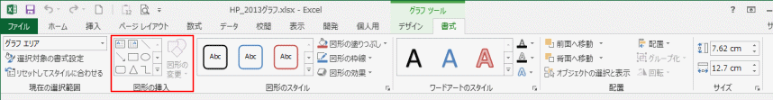 - Excel2013では[図形の挿入]グループが加わっています。Excel2010では挿入グループにあったものがここへまとめられています。