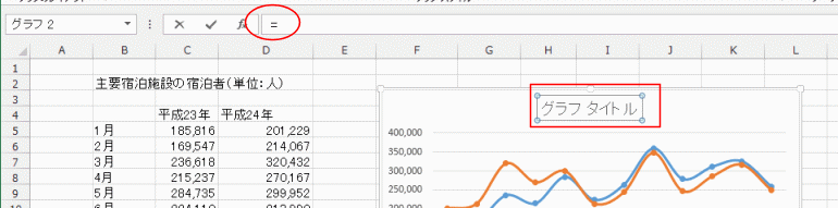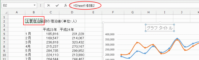 - タイトルに使用したいセル B2セルをクリックして選択します。