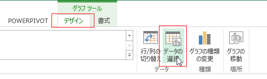 - グラフツールのデザインタブの[データの選択]を実行します。