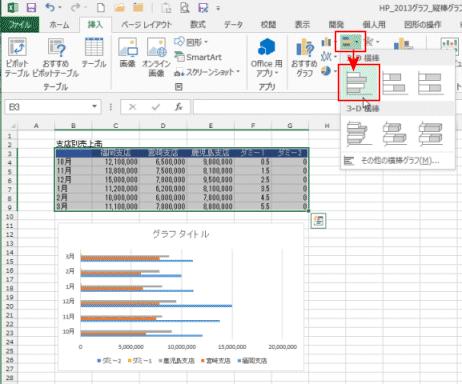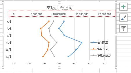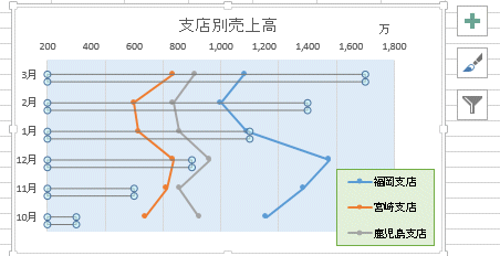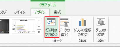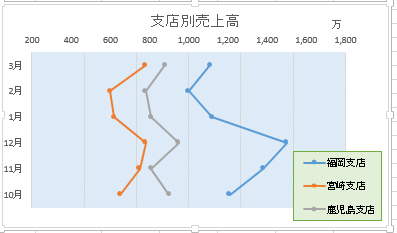 - Y軸(縦軸)が支店名になった時は、「行/列の切り替え」を実行します。