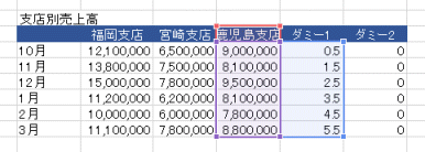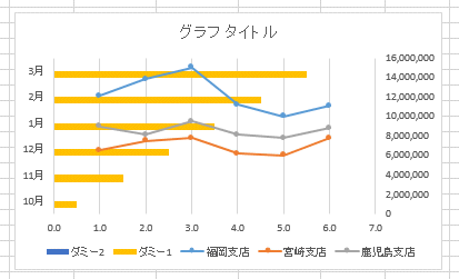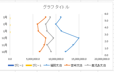 - ダミー1は折れ線にするためのデータ、ダミー2は横棒のデータになります。