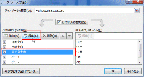 - 系列「鹿児島支店」を選択して[編集]ボタンをクリックします。