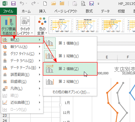 - 第2横軸が表示されました。