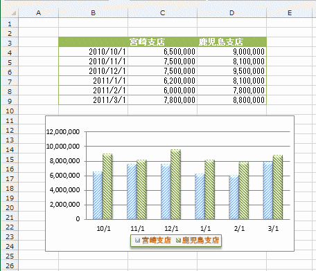 よねさんのExcelとWordの使い方|エクセル2013基本講座:目次|グラフの使い方|グラフのデータの一部を非表示にする