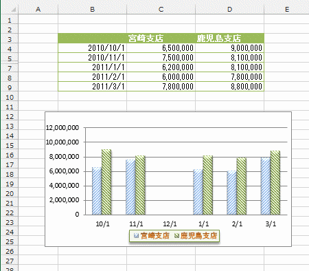 項目軸に12月が残っています。これは項目軸が日付軸になっているからです。