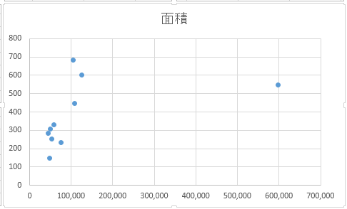 - 項目軸(X軸、横軸)の目盛が自動になっていますので、プロットするデータに応じて変化しています。