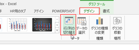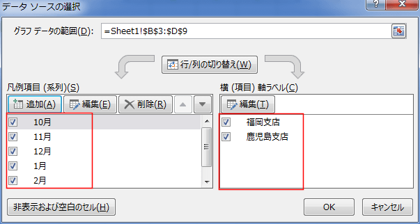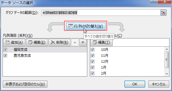 データソースの選択で[行/列の切り替え]ボタンをクリックします。