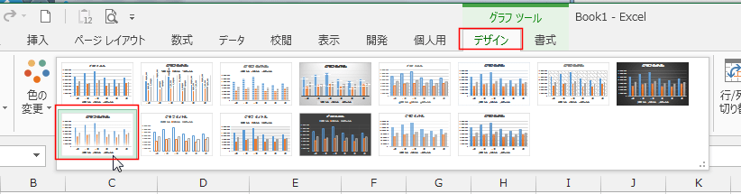 - または、グラフツールの[デザイン]タブにある[データの選択]を実行します。