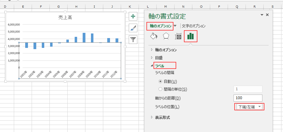 ラベルの位置を「下端/左端」に変更しました。