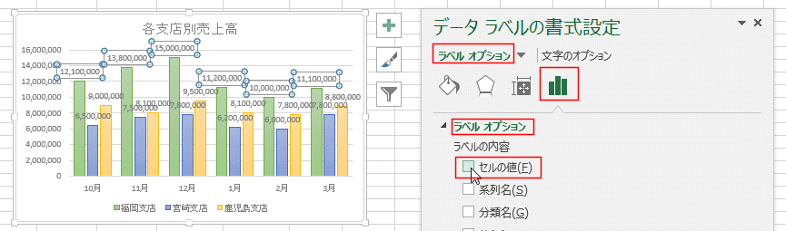 データラベルにセルの値を使う