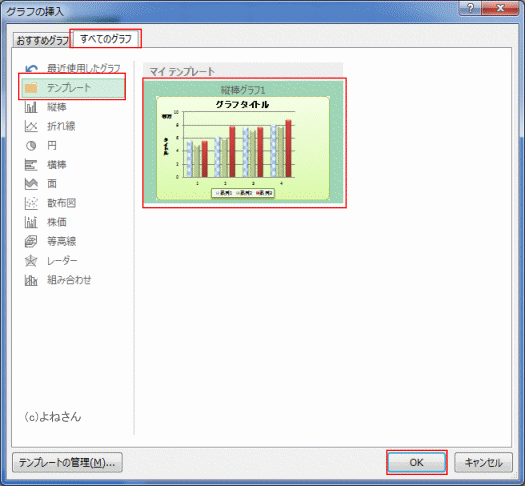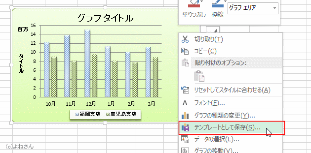 よねさんのExcelとWordの使い方|エクセル2013基本講座:目次|グラフの使い方|グラフをテンプレートとして保存して利用する