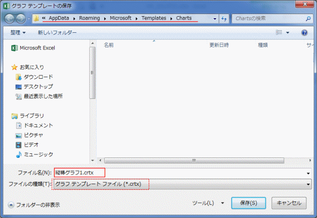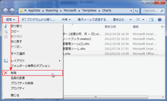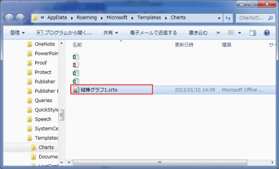 - フォルダの場所:Windows 7ではC:\Users\ユーザー名\AppData\Roaming\Microsoft\Templates\Chartsとなります。