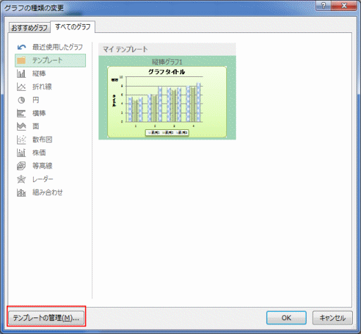[テンプレート]を選択し、登録したグラフのテンプレートを選択します。
