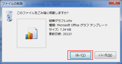 - 削除の確認画面が表示されますので、[はい]ボタンをクリックするとゴミ箱へ移動されます。
