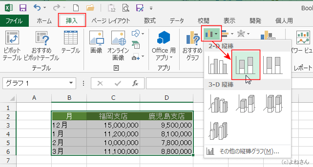 よねさんのExcelとWordの使い方|エクセル2013基本講座:目次|グラフの使い方|積み上げ縦棒グラフを作成する