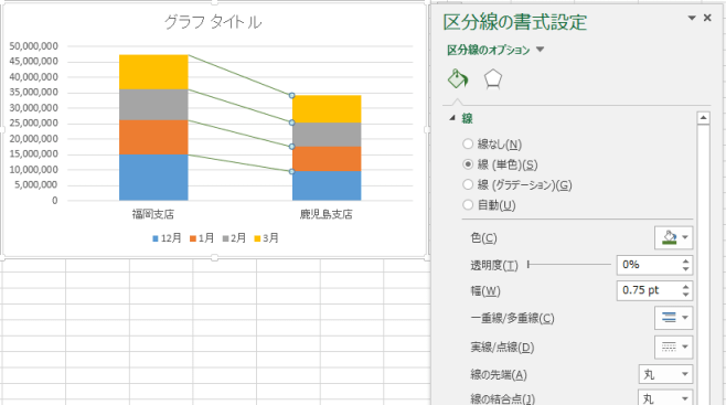 - 区分線をダブルクリックすると「区分線の書式設定」が表示されます。