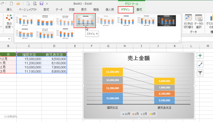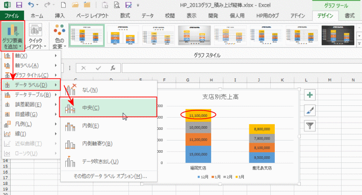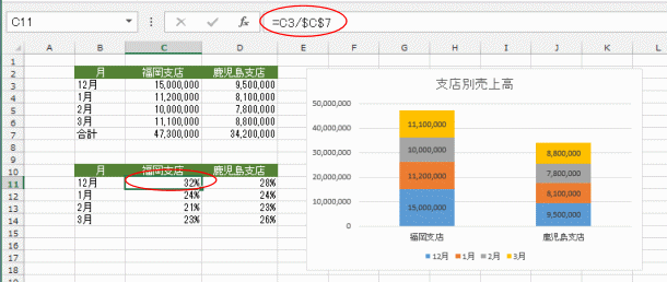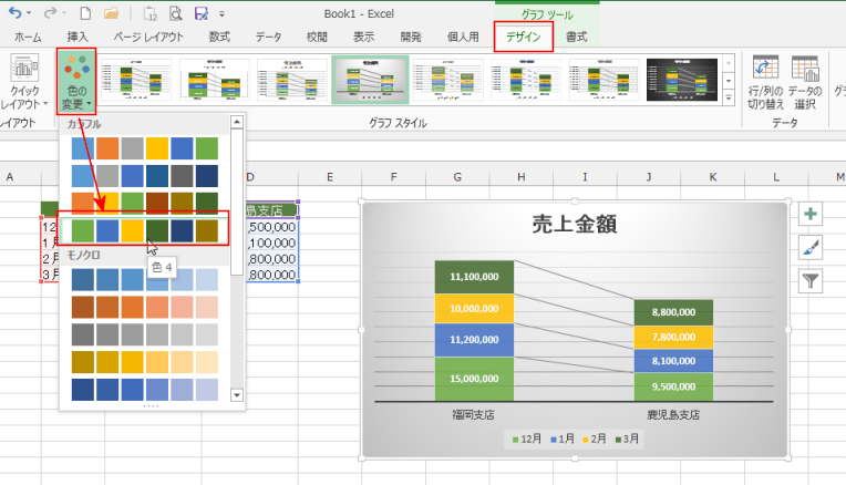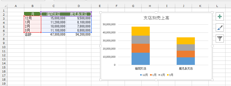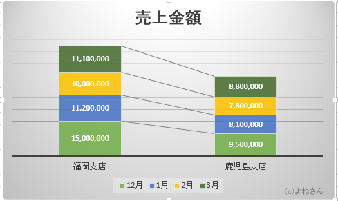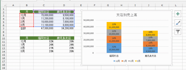 - 積み上げの順番が「鹿児島支店」「福岡支店」の順番に変わりました。