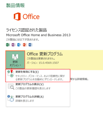 - [更新オプション]ボタンをクリックして、[更新を有効にする]を選択します。