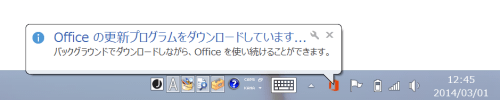 - 更新プログラムがある場合は、タスクバーに「Officeの更新プログラムをダウンロードしています」と表示されます。