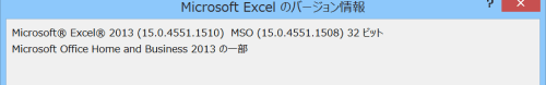 - なお、以前のバージョンはMicrosoft Excel2013 (15.0.4551.1510) となっていました。