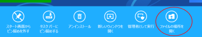 - 画面の下の方に表示される「ファイルの場所を開く」を実行します。