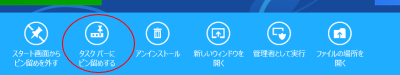 - 画面の下の方に表示される「タスクバーにピン留めする」を実行します。